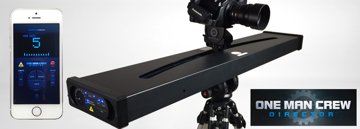 New! Redrock Micro One Man Crew Director motion control slider dolly. Great for interviews & product shots, the OMC adds subtle motion to otherwise static shots. Its curved track keeps the subject centered and in focus. The iOS app allows remote control from an iPhone - so no operator hovering over the camera.