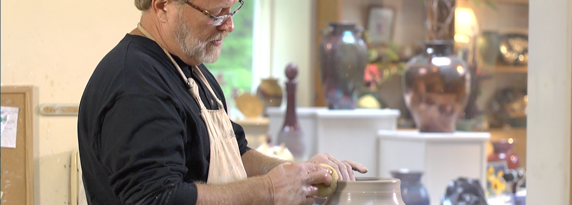 A frame from the Sturbridge Tourism video showing local artisan at work in his studio.